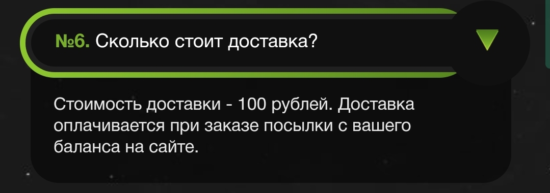 Чтобы заказать доставку, перейдите в ваш профиль в раздел “Инвентарь”, выберите нужный товар и нажмите кнопку “Заказать доставку”.